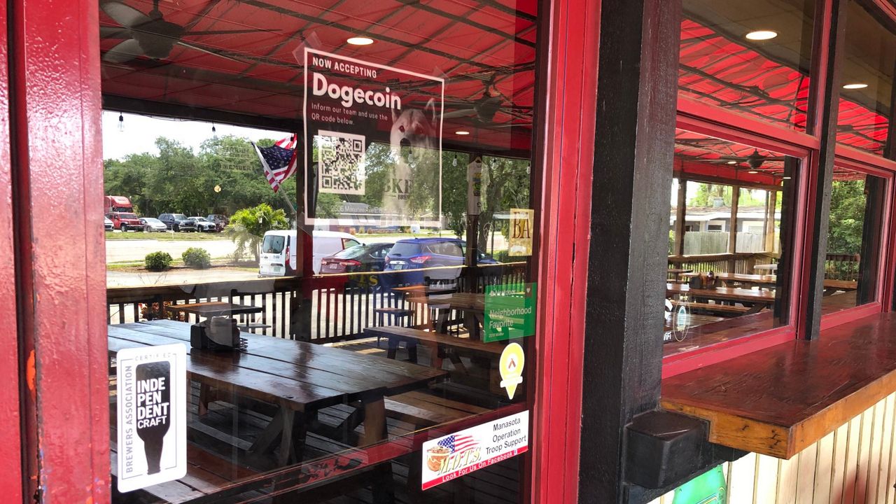 BRADENTON, Fla. — A picture of a dog next to a QR code now hangs in the window at 3 Keys Brewing and Eatery in Bradenton. It shows the latest way you can pay for your burgers or beer, by using Dogecoin.